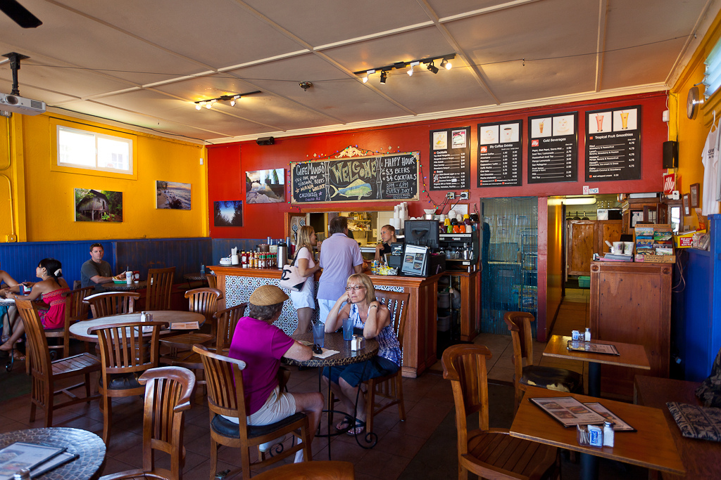 A word to the wise: parking is tricky in Paia. On street parking is a matter of luck. There are two free public parking lots – one as you enter town and another on Baldwin Avenue not far from Cafe Mambo but on the opposite side of the street. Nothing in Paia is far from anything else.