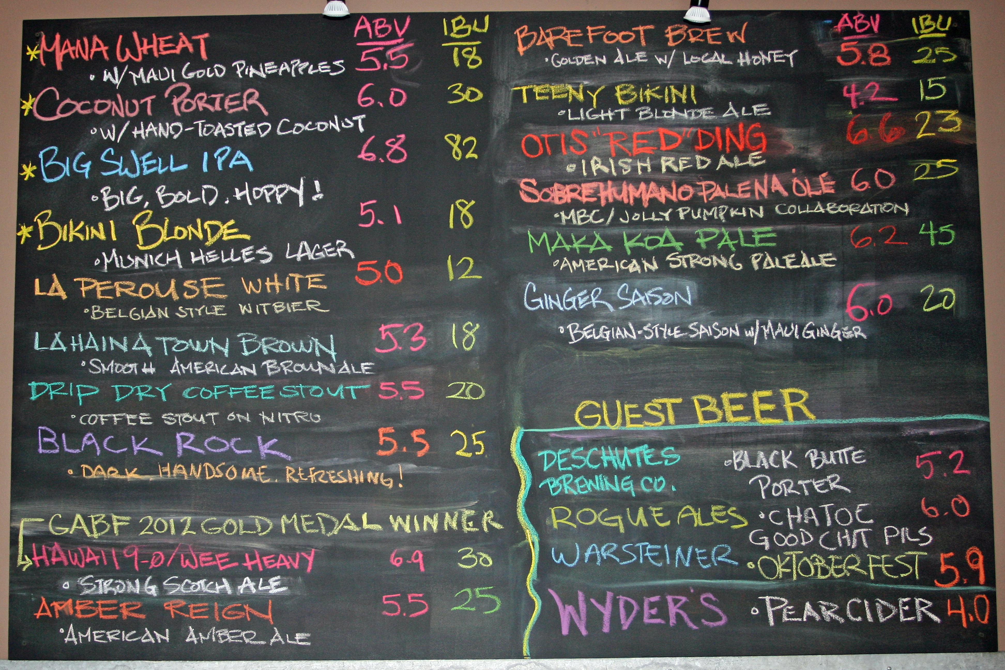 If you can’t make it to the brewery, or if you’d perfer a nice Hawaiian view with your suds, ask your bartender what’s on tap from the Maui Brewing Company. Lots of places carry one or more of their brews. Many grocery stores do also, but we prefer it from the tap!