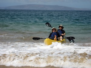 Almost all the kayaks you see on Maui are one-piece hollow molded plastic boats. You might get your bottom wet from splashed water but, without taking an axe to the hull, they are virtually unsinkable. That said, be aware that kayaks will roll when sideways to the waves, so be cautious. If you don’t know what you’re doing, think about signing up for a group kayaking tour before going out on your own. They provide guides, give instruction, and, if there is a problem, someone is there to help. It’s no joke to be out on the ocean when the seas get rough and the winds are against you.